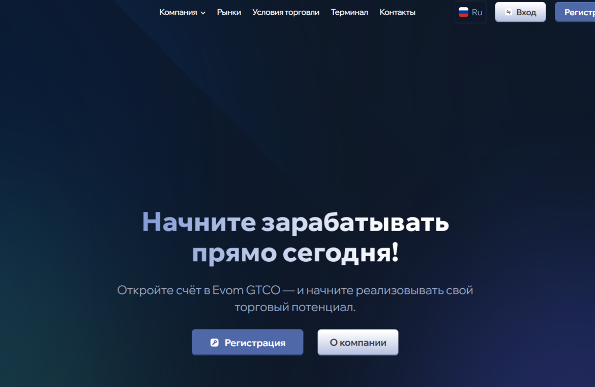 Сайт компании Evom GTCO выглядит профессионально и привлекательно, что создает иллюзию надежности. Однако, при детальном рассмотрении можно заметить, что информация на сайте изобилует общими фразами и маркетинговыми клише. Отсутствие конкретных данных о лицензиях и регуляторах, а также неоднократно повторяющиеся блоки текста указывают на попытку скрыть реальные факты и создать фальшивую репутацию.