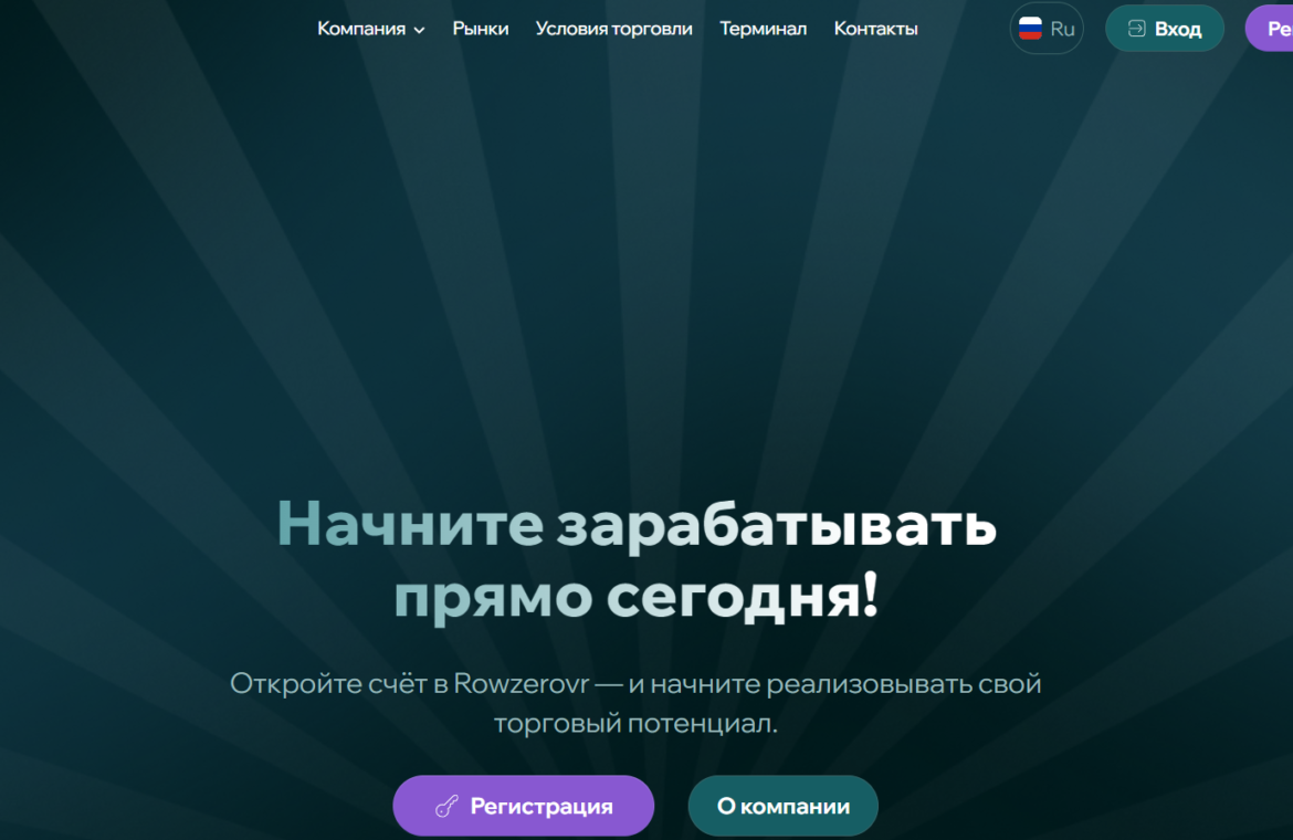 Сайт Rowzerovr выглядит как стандартный шаблонный веб-ресурс, типичный для мошеннических брокеров. Дизайн страницы примитивен, а логотип — убогий и не вызывает доверия. Отсутствие оригинальности в дизайне и использование шаблонных решений часто сигнализируют о том, что за платформой стоит не серьезная финансовая организация, а мошенники, цель которых — быстро обмануть клиентов и скрыться.