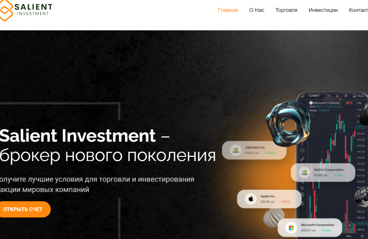 Salient Investment позиционирует себя как передовой брокер, предоставляющий клиентам возможность торговать широким спектром финансовых активов. Начав свою деятельность в Великобритании в середине 2017 года, компания активно привлекает инвесторов со всего мира благодаря передовой веб-платформе и уникальному комплекту торговых инструментов. Однако, несмотря на внешнюю привлекательность, Salient Investment вызывает множество сомнений и обвинений в мошенничестве. В этой статье мы рассмотрим ключевые аспекты деятельности компании и разберёмся, стоит ли доверять этому брокеру.