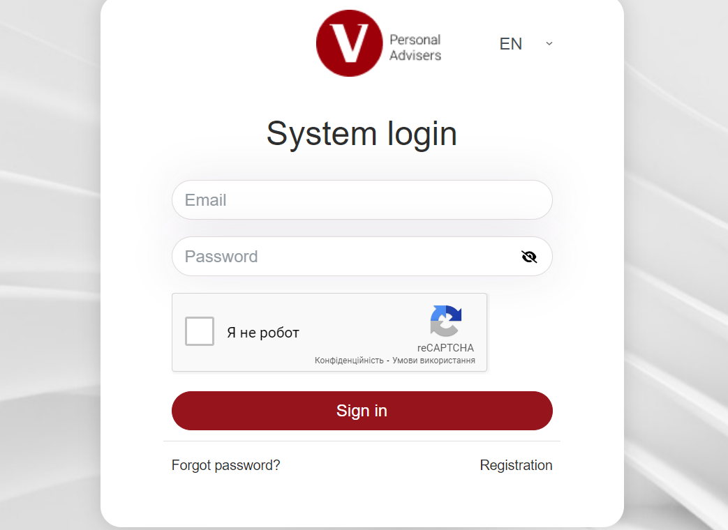 Personal Advisers, как и многие мошеннические проекты, используют тактику привлечения доверия через простую и понятную регистрацию. На сайте вам предложат ввести ваш email и пароль для входа в систему, а также возможность восстановить забытый пароль. Все это делается с одной целью — заставить вас довериться платформе и внести деньги на счет, которые в дальнейшем будет практически невозможно вернуть.