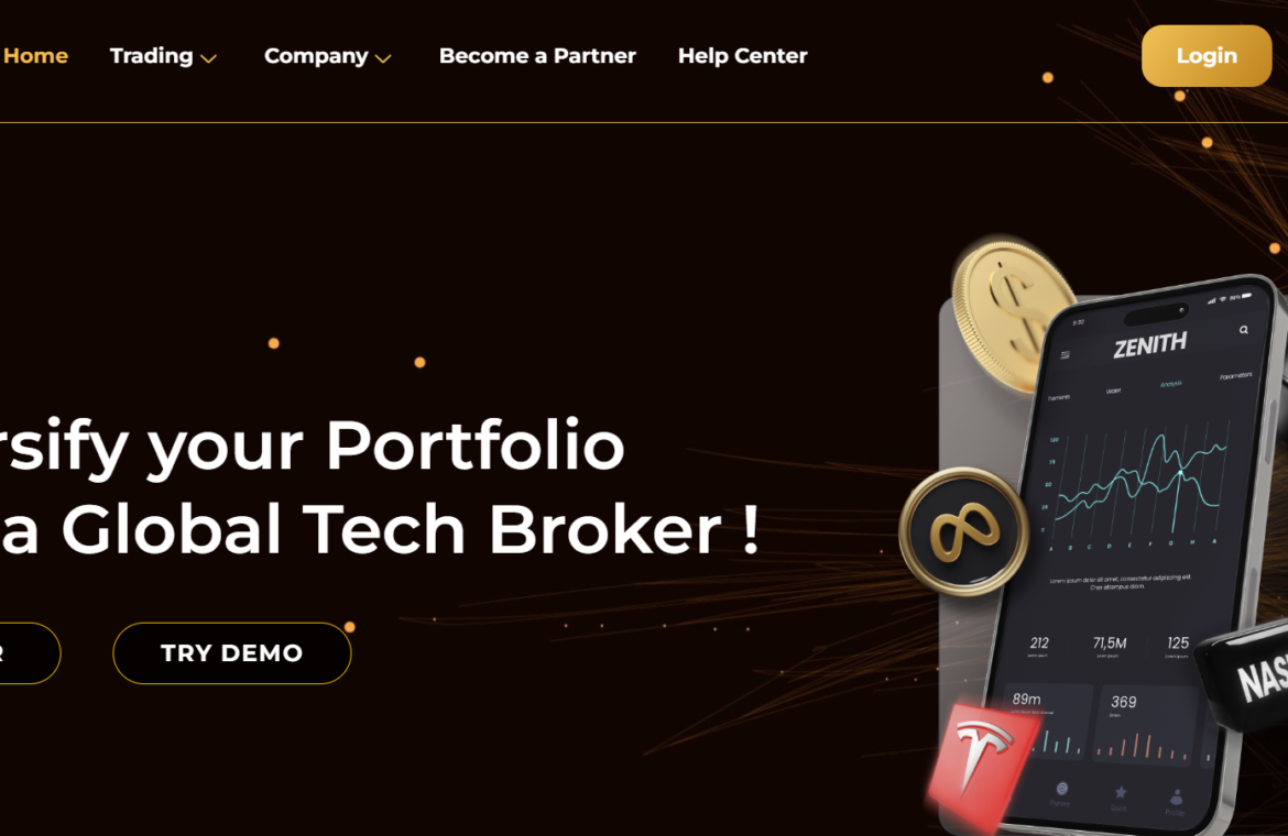 Zenith CFD, обозначаемый как глобальный технологический брокер, предлагает уникальную возможность «диверсифицировать портфолио». Их сайт, сверкающий золотыми оттенками и обещающий технологическое совершенство, кажется создан скорее для впечатления, чем для предоставления конкретной ценности. Заманчивые условия торговли с нулевой комиссией и молниеносным выполнением заказов кажутся нереальными, вызывая вопросы о потенциальном обмане.