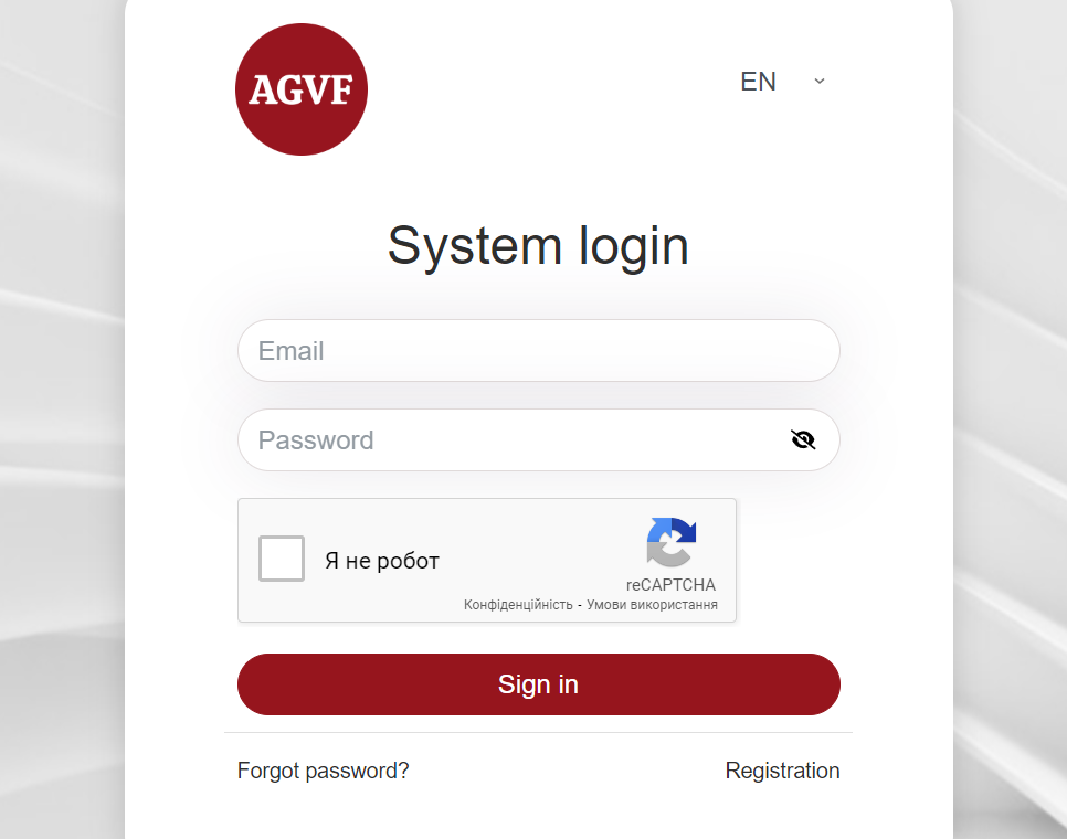 Сайт AGVF предлагает базовый портал для системного входа, который включает поля для ввода электронной почты и пароля, а также функции восстановления забытого пароля и регистрации нового пользователя. Внешний вид страницы логина — чистый и простой, с минимумом дизайнерских элементов, что может восприниматься как недостаток визуальной информации о самой компании и предоставляемых услугах.