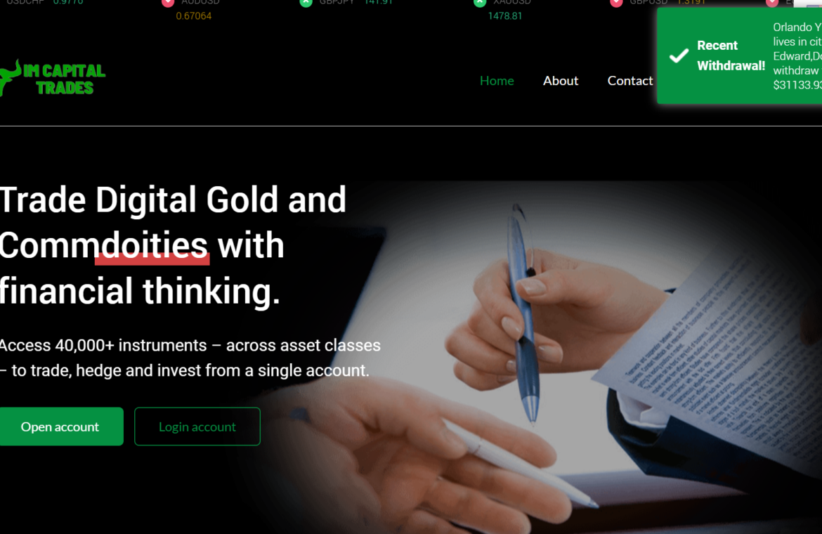 IM Capital Trades заявляет, что является «глобально лицензированной» и регулируемой компанией, однако на сайте нет никаких реальных доказательств наличия лицензии. Отсутствие прозрачной информации о регулировании и юридических документах вызывает серьезные опасения. Это типичная схема для мошеннических сайтов, которые создаются, чтобы присваивать деньги клиентов, обходя законы и правила.
