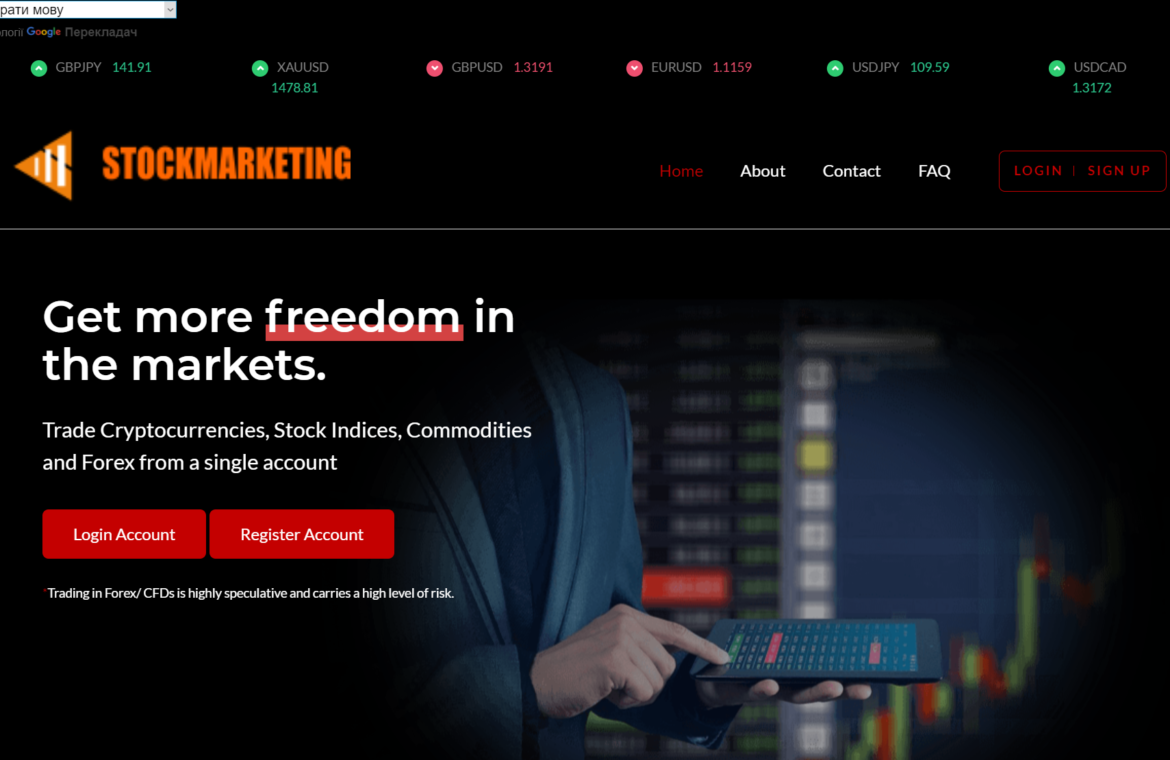 Stockmarketing — это уже пятая копия одной и той же мошеннической схемы, которая неоднократно появлялась под разными именами. И хотя на сайте делают громкие заявления о «профессиональных трейдерах» и «высокой доходности», на деле это абсолютно скам, гарантированно ведущий к потере денег. На платформе активно используются агрессивные маркетинговые тактики и фальшивые отзывы, чтобы заманить наивных пользователей.