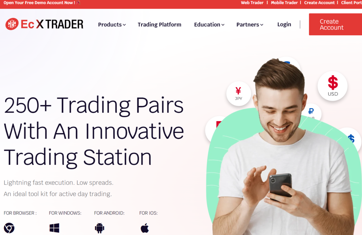 ECX Trader — платформа с «молниеносным исполнением ордеров», «низкими спредами» и доступом к 250+ торговым парам, включая акции, валюты, сырьевые товары и криптовалюты. Однако стоит внимательно рассмотреть конкретные данные, прежде чем доверять этой платформе. Обещания высокой ликвидности, отсутствия комиссий и сверхвысокого кредитного плеча выглядят привлекательно, но под ними могут скрываться опасности.