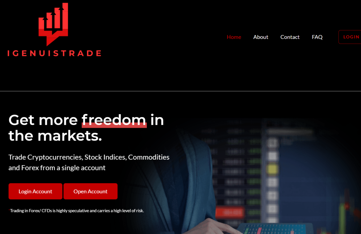 Сайт Igenuis Trade выполнен по тому же шаблону, что и многие другие мошеннические ресурсы. Единственное, что изменилось — это логотип и цвета. Мошенники даже не пытаются скрыть свою сущность, копируя друг у друга дизайн и контент. На сайте можно найти «отзывы» пользователей, которые, естественно, фальшивые. Описания торговых условий выглядят привлекательно, но они предназначены только для того, чтобы убедить людей внести депозиты. Никакой реальной информации о компании, подтверждений ее легальности или лицензий на сайте не найти, что сразу вызывает серьезные подозрения в отсутствии регулирования.
