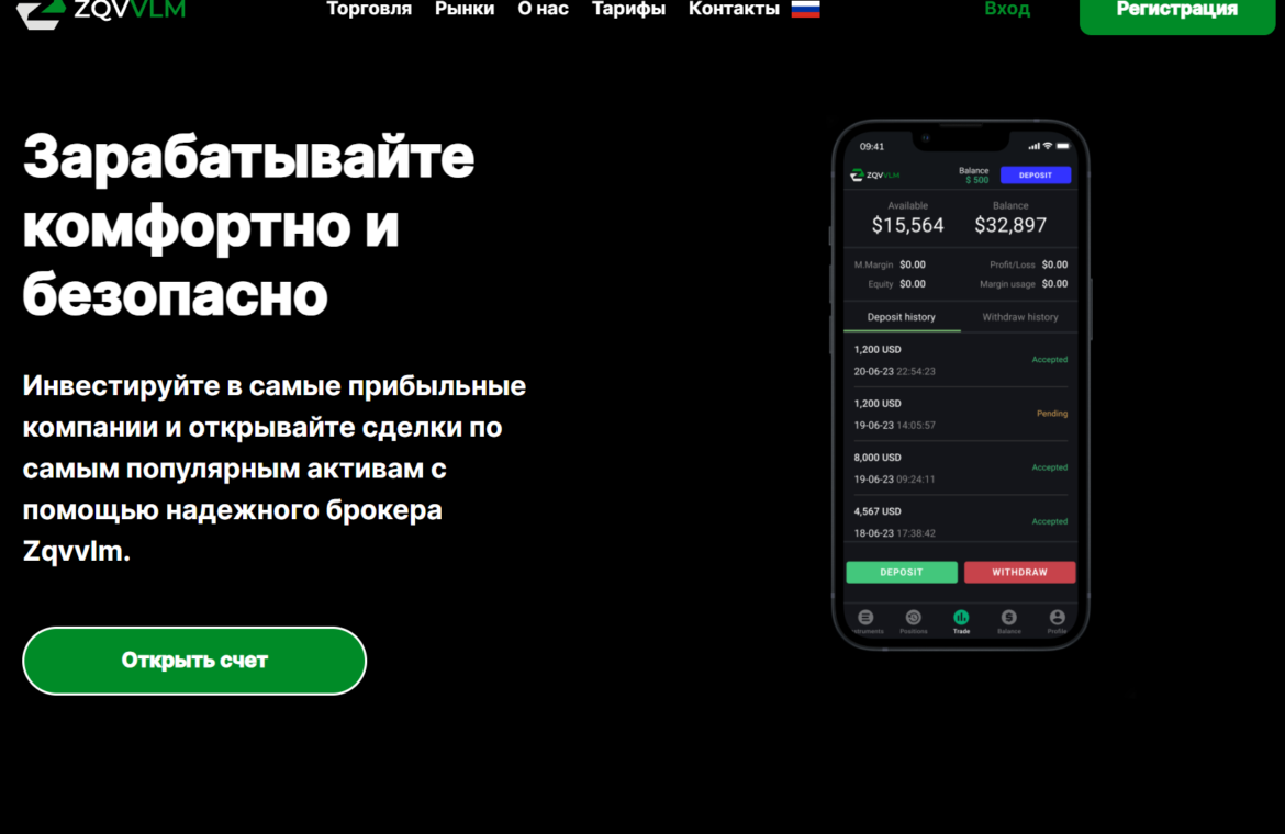 Zqvvlm — это очередной скам на финансовом рынке, который строит бизнес на доверии наивных клиентов. Обещания «страхования вкладов», «защиты депозитов» и «моментальных выплат» — это лишь пустой звук. Если вы ищете надежного брокера, лучше обойдите эту компанию стороной.