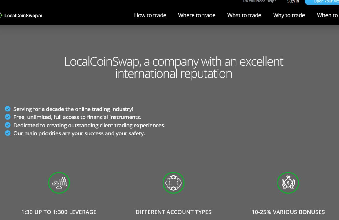 LocalCoinSwap предлагает кредитное плечо от 1:30 до 1:300 и обещает бонусы до 25% для новых клиентов. Это может показаться привлекательным для трейдеров, особенно тех, кто только начинает свой путь. Однако на сайте нет точных данных о комиссиях, спредах или других скрытых платежах, что может скрывать реальную стоимость торговли. Прозрачные торговые условия — ключевой фактор при выборе надёжного брокера, и их отсутствие может свидетельствовать о потенциальных рисках.