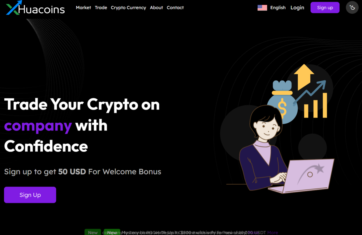 Что может быть лучше, чем очередная «волшебная» платформа, обещающая горы золота всего за пару кликов? Huacoins как раз такая: красиво упакованная и броско украшенная, она готова заманить в свои сети всех, кто ищет лёгкий и быстрый доход. Сайт пестрит яркими лозунгами о «лучших условиях» и «загадочных бонусах», но всё это больше похоже на рекламный трюк, чем на реальную возможность инвестирования. Ведь когда обещания слишком хороши, чтобы быть правдой, это верный признак обмана.