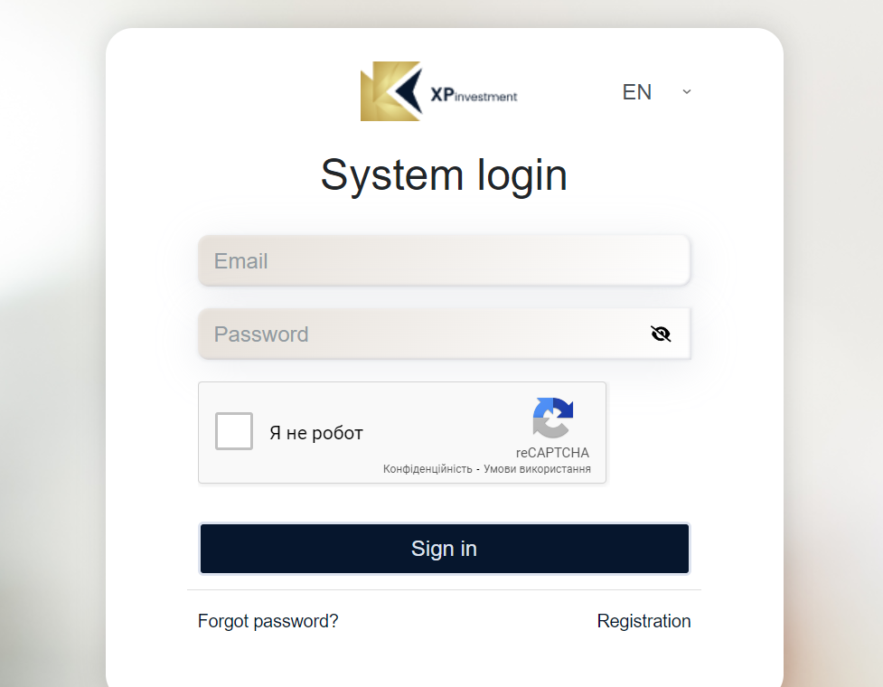 XPinvestment вызывает недоумение с первых секунд. На сайте нет ни информации о компании, ни описания услуг — перед пользователями открывается лишь форма для входа и регистрации. Вся структура платформы выглядит крайне подозрительно и больше похожа на ловушку для сбора данных, чем на честного брокера.