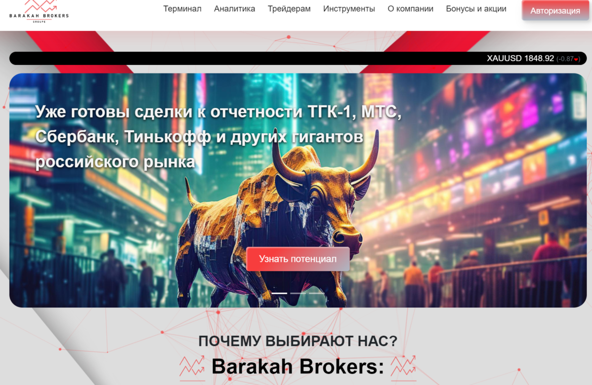 Barakah Brokers — это платформа, которая старается произвести впечатление профессионального и надежного брокера. Но первое, что бросается в глаза при посещении сайта, — это навязчивый акцент на «выгодных» сделках с российскими гигантами, громкие лозунги и пустые обещания. Вся структура сайта построена так, чтобы завлечь трейдеров громкими словами о доходности и успехе, но реальной информации о лицензиях и безопасности средств не представлено. Вопросы о надежности и правовом статусе Barakah Brokers остаются без ответа, что заставляет задуматься, насколько серьезны их намерения.