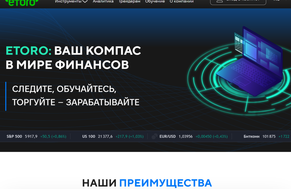 «Ваш компас в мире финансов» — так пафосно заявляет о себе ETORO, на первый взгляд пытаясь выглядеть глобальным игроком на финансовом рынке. Но достаточно немного изучить сайт, чтобы понять: за громкими лозунгами скрывается стандартный шаблон мошеннической платформы. Вместо того чтобы быть «верным напарником», компания делает все, чтобы направить ваши деньги прямиком в их карманы.